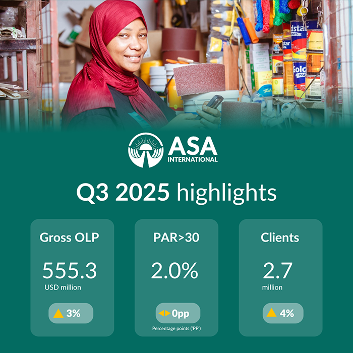 A major milestone this quarter was the successful digital transformation in Ghana, with the migration to the Temenos T24 core banking system, bringing 35% of ASA International’s clients onto the new platform. The new loan officer app was also launched, marking an important step forward in operational efficiency and soon to be followed by a client app rollout.